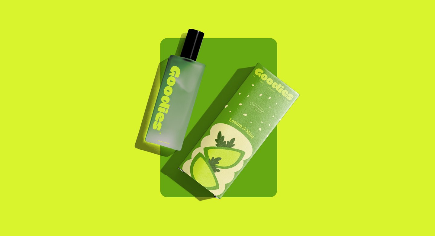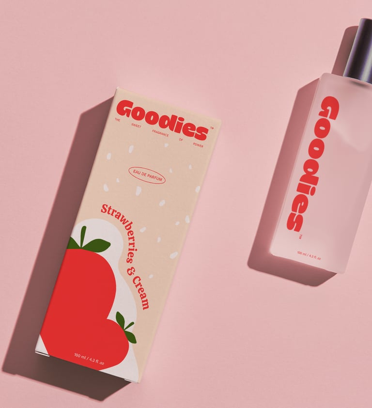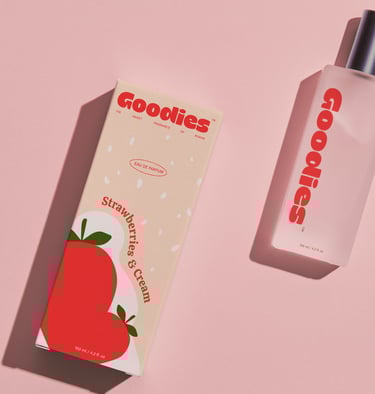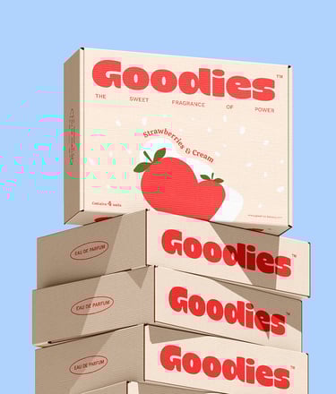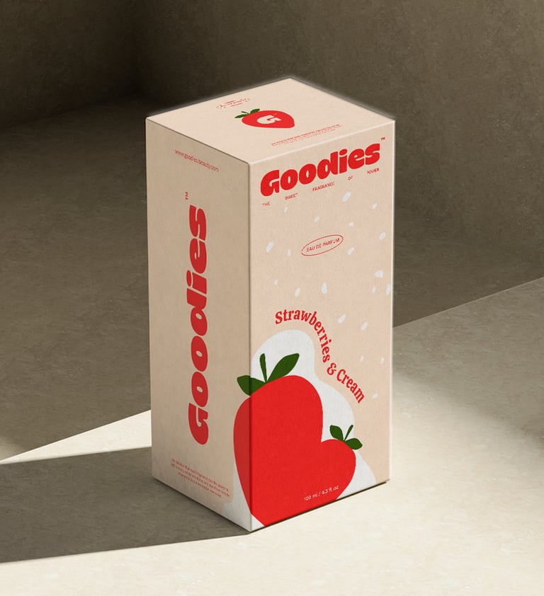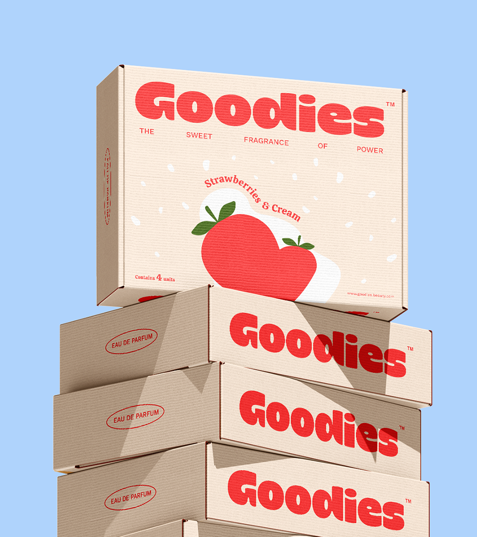 Desde o doce dos morangos ao ácido dos limões, a Goodies é especializada em fragrâncias com aromas deliciosos como se fossem comestíveis. Por isso, para a marca era essencial que suas embalagens de perfumes remetessem a embalagens de alimentos de forma estratégica e proposital, possuindo uma linguagem visual diferente do comum.