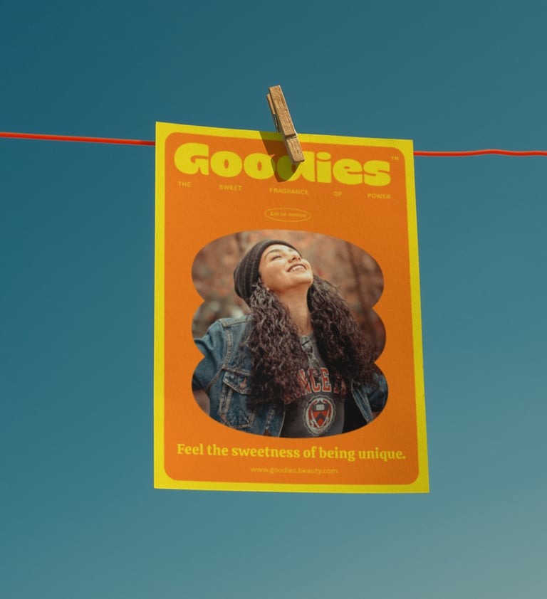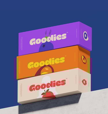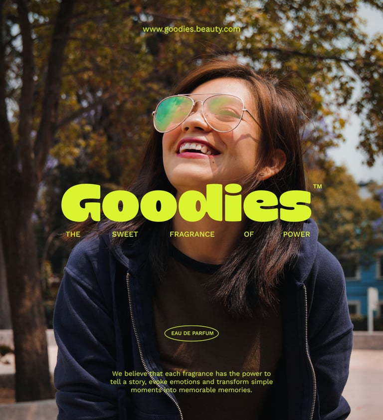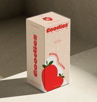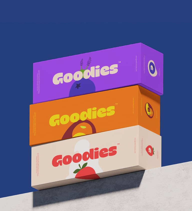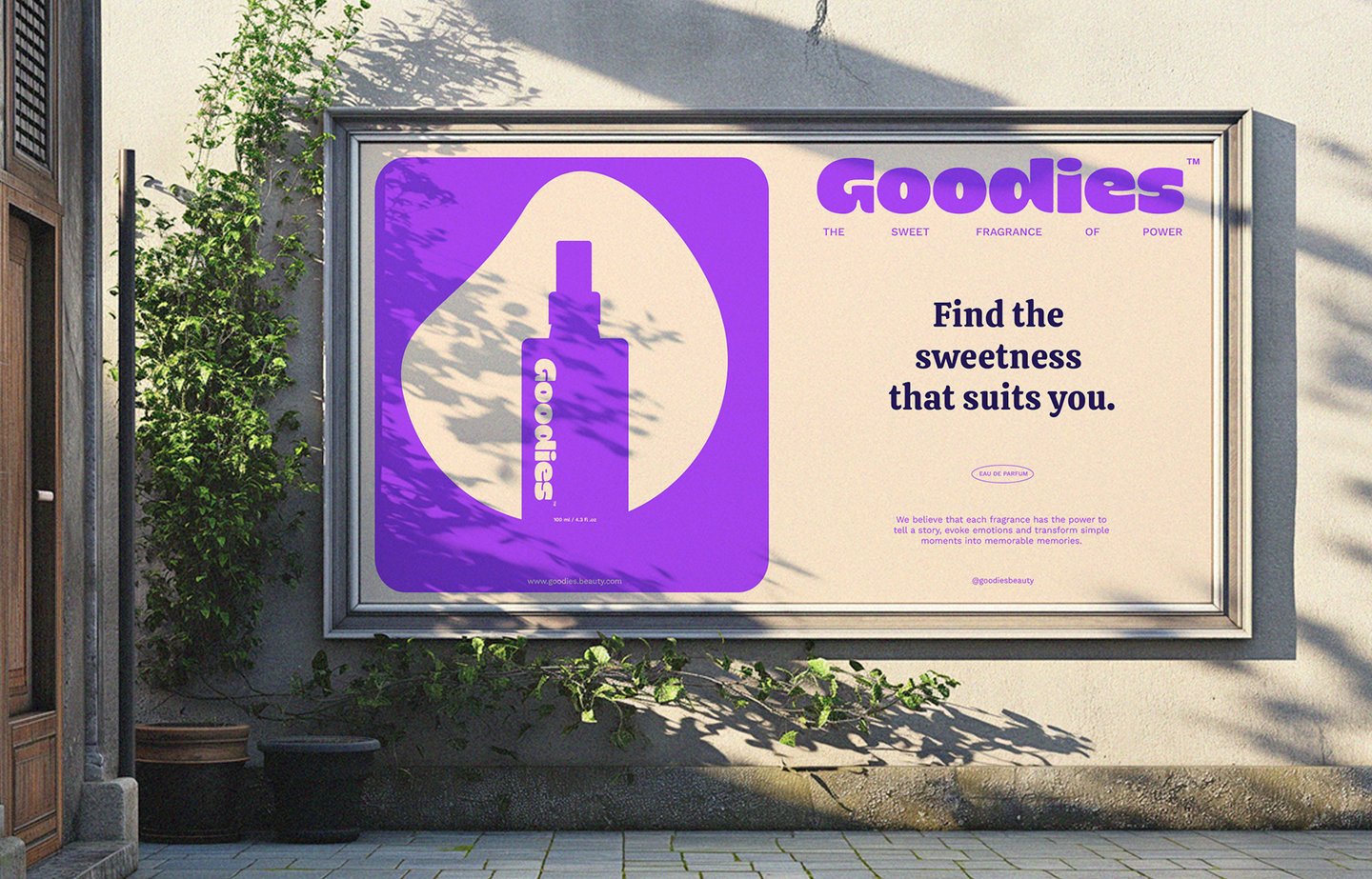 Desde o doce dos morangos ao ácido dos limões, a Goodies é especializada em fragrâncias com aromas deliciosos como se fossem comestíveis. Por isso, para a marca era essencial que suas embalagens de perfumes remetessem a embalagens de alimentos de forma estratégica e proposital, possuindo uma linguagem visual diferente do comum.