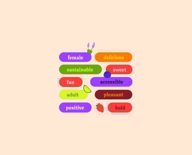A criação de uma identidade visual colorida e exagerada também eram objetivos do projeto, transmitindo seus atributos de divertida, ousada, positiva, lúdica, adulta, feminina e acessível. A proposta inicial era do desenvolvimento de sua primeira embalagem, para a fragrância de Strawberries & Cream, que apresenta notas de morangos, chantilly, baunilha, açúcar e limão. Mas foi possível previamente expandir o visual para sugestões de fragrâncias seguintes, como Limão & Menta; Blueberrys & Lavanda e Laranja & Manga.